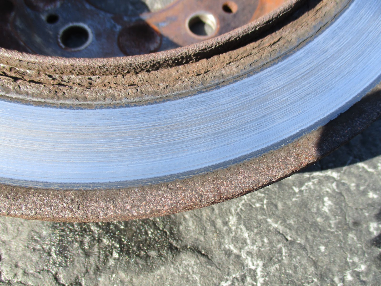 Really glad I made the cheap decision to replace the rotors. I had let the rear pads go too far last time and didn't inspect the rotor all that well. Turns out the inside of the rotors were in horrible shape and just ate the fresh pads right up. Way to go, Chris!