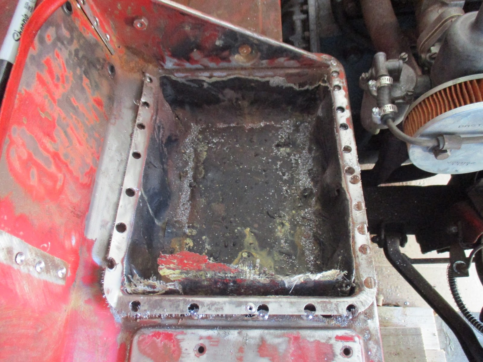 through on the bottom. The PO had put down a thick fiberglass matt to fix it
