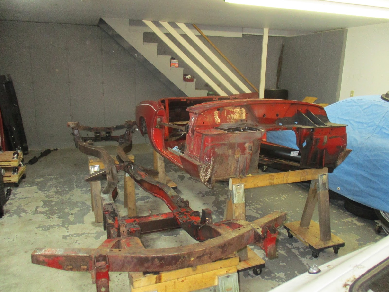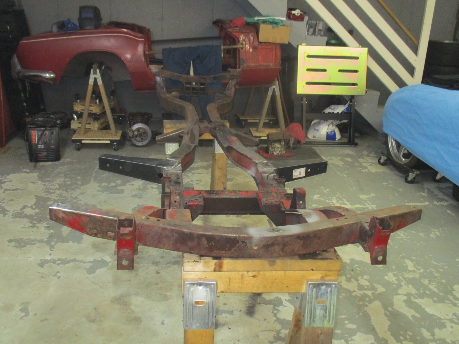 I bought a "drying rack" for all of the parts that I'm going to be painting over the next few weeks. Specifically, it's a Harbor Freight (surprise, I know) Portable Work Stand. I should be able to re-purpose this in the future for working on body parts like the doors, boot lid, etc. But, for now, it just a convenient place to hang stuff.