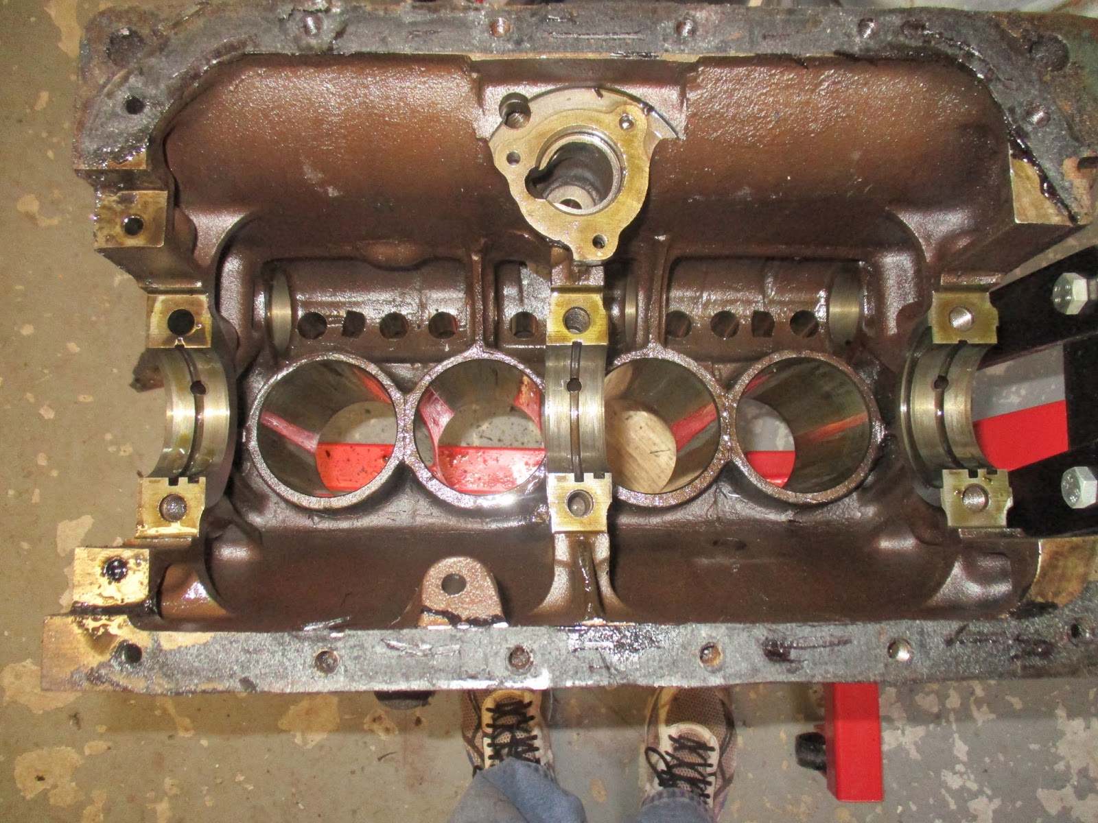 Much cleaning and many measurements and checks remains, but she's completely stripped. Well, except for the distributor bushing.