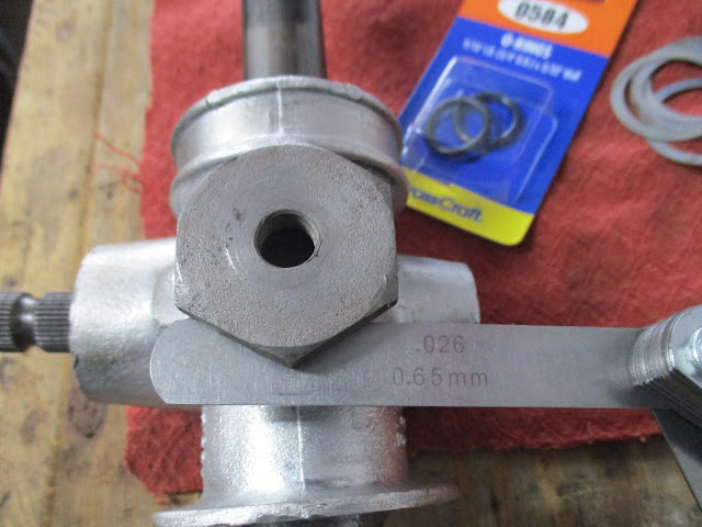 Next was the steering joint. This is one hell of an engineered piece for what it seems to accomplish. Though these are still available from Rimmer's, if you order one over here, like from SpitBits, you'll get a regular steering knuckle. Not quite sure why Triumph designed the thing this way, but lets break it down a bit and see.