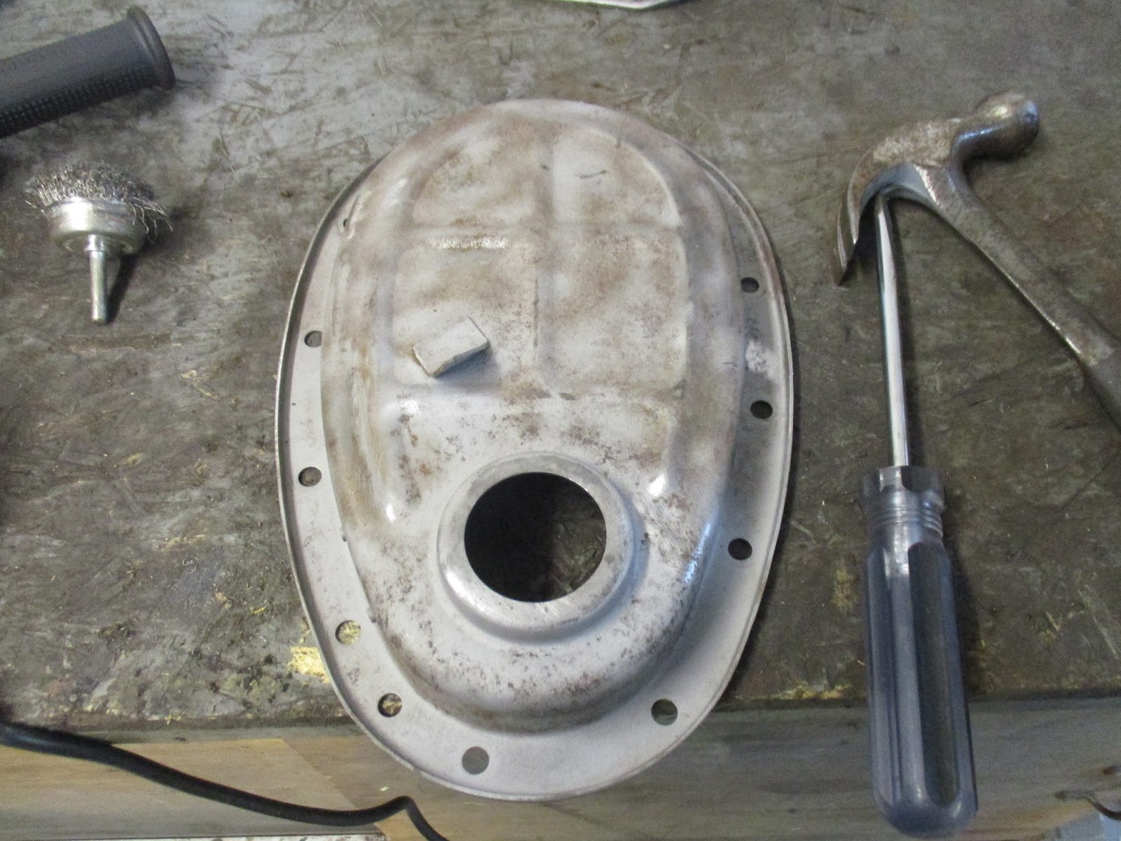 Timing chain cover after a visit to the blast cabinet. Not a perfect job.