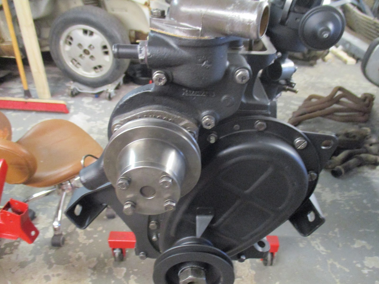 That was about as much as I could get bolted up with the motor still on the stand, so it was time to put it on the hoist and get it on the chassis.