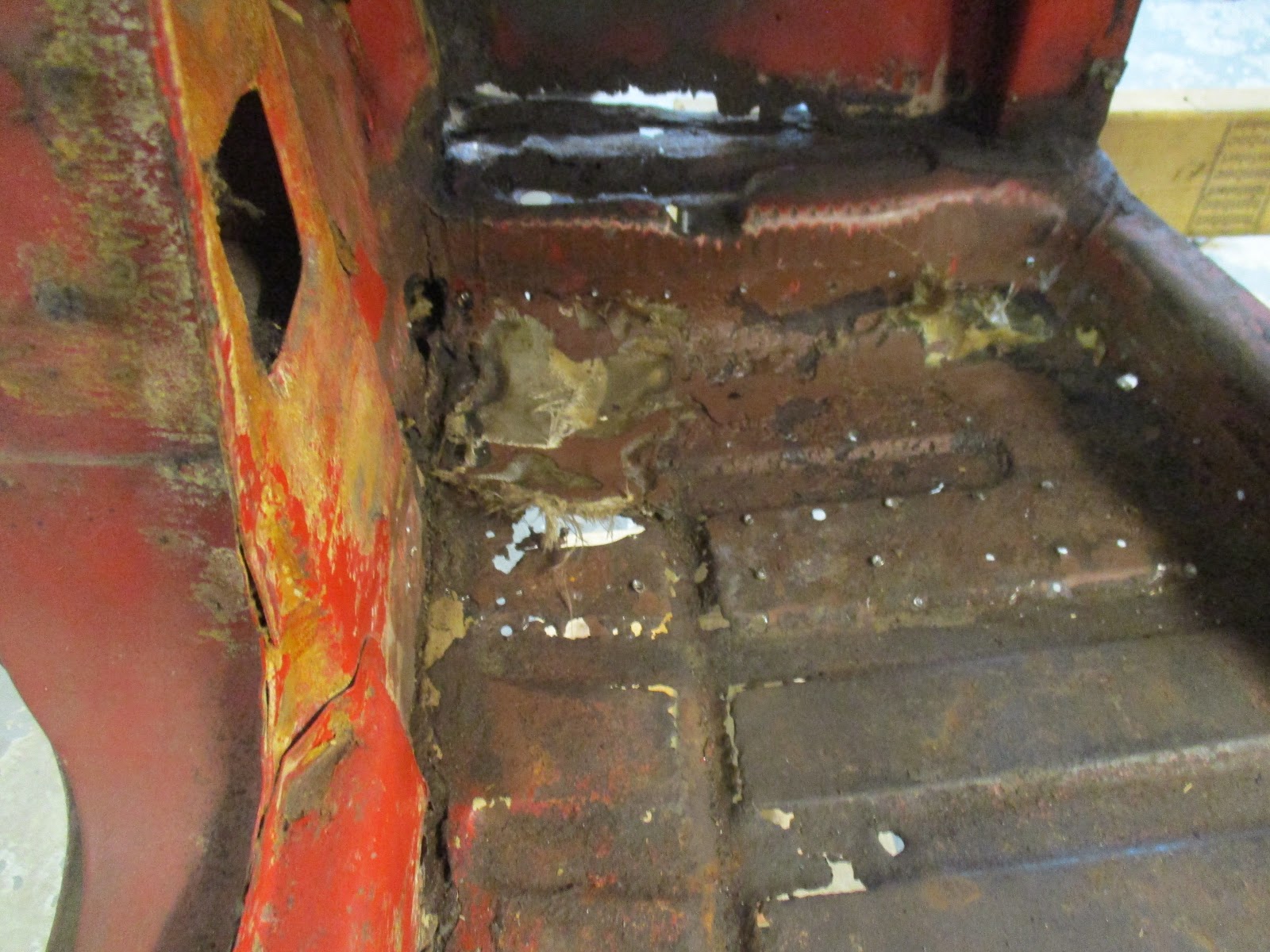| Same area but from inside the passenger compartment. Note the fiberglass repairs (yuck!). |