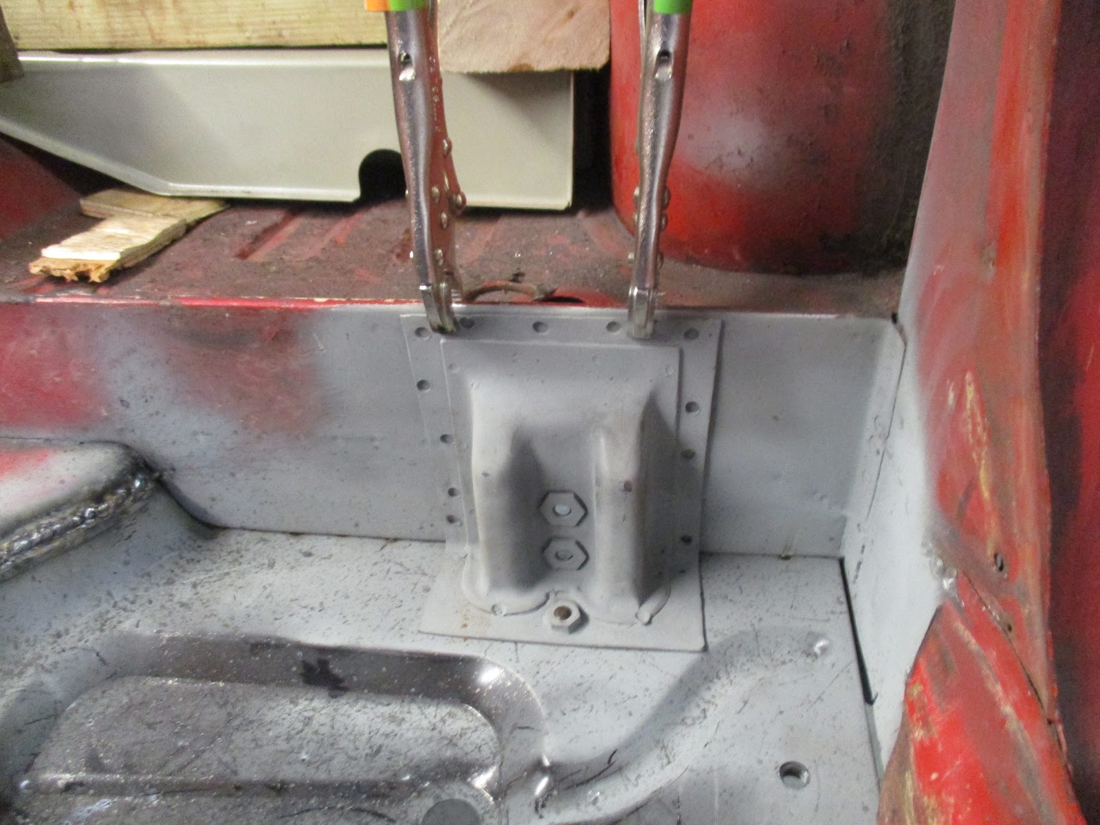 | Bulkhead and floor pan clamped together. |