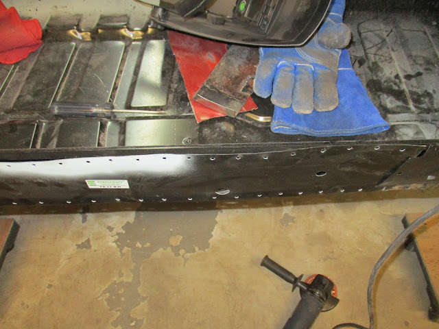 After a bit, if was ready to tack in. You may notice some rust pitting in the piece. I thought about this and my assessment was that it wasn't significant enough to scrap it. I applied some POR-15 Metal Prep to convert the rust I didn't fully remove and went with it. I may regret this decision, but it was a chance I was willing to take.