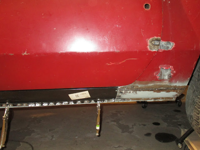 I don't know how long I've been working on getting these things in (and I don't want to know), but I finally got the driver's side outer sill installed. It actually lines up pretty well, too!