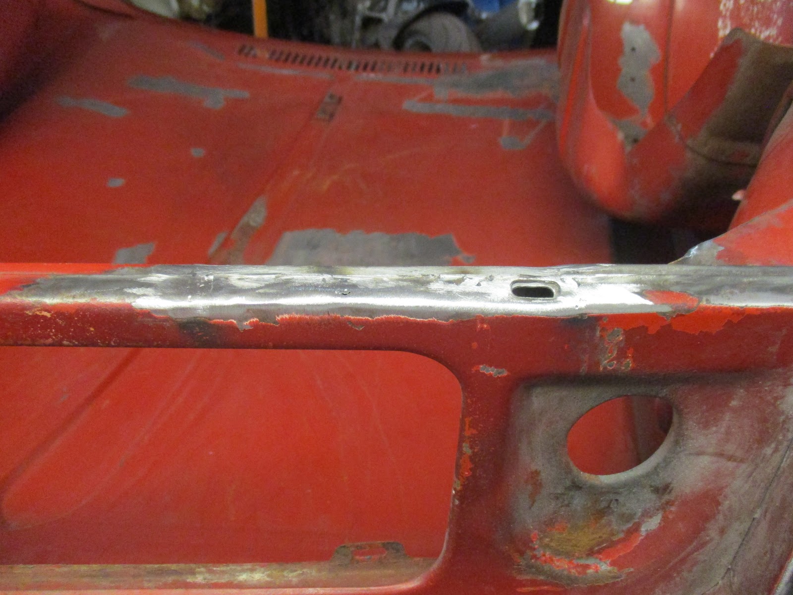 I took a little side-track then and cut out the old wire harness tabs that line the front of the bonnet near the grill. These are used to guide the harness for the headlights and front signals. I made new ones and got those painted. I decided not to weld them in because they would only tear up my arms as I try to clean the bonnet.