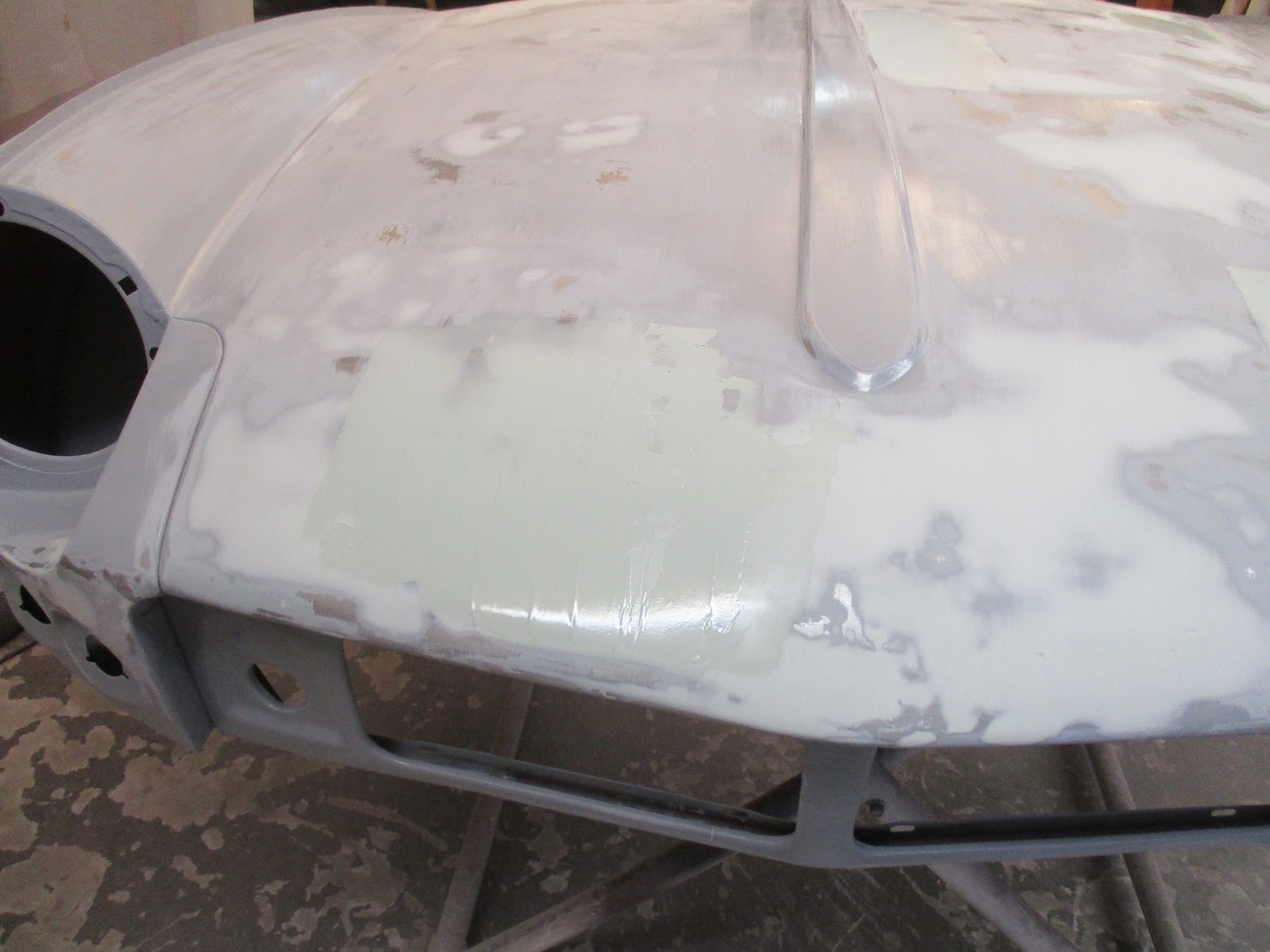 And that was about all I did for those visits. May not seem like much, but it takes time to block all of that out. I have a lot of sanding scratches left, too, but I'm hoping the build primer will fill those (otherwise, I'm going to be doing a lot more blocking). Also, as I mention in the video, I was getting a bit burned out on the body work on Sunday so I got the bonnet in epoxy and went home to watch football (sorry, Eagles).