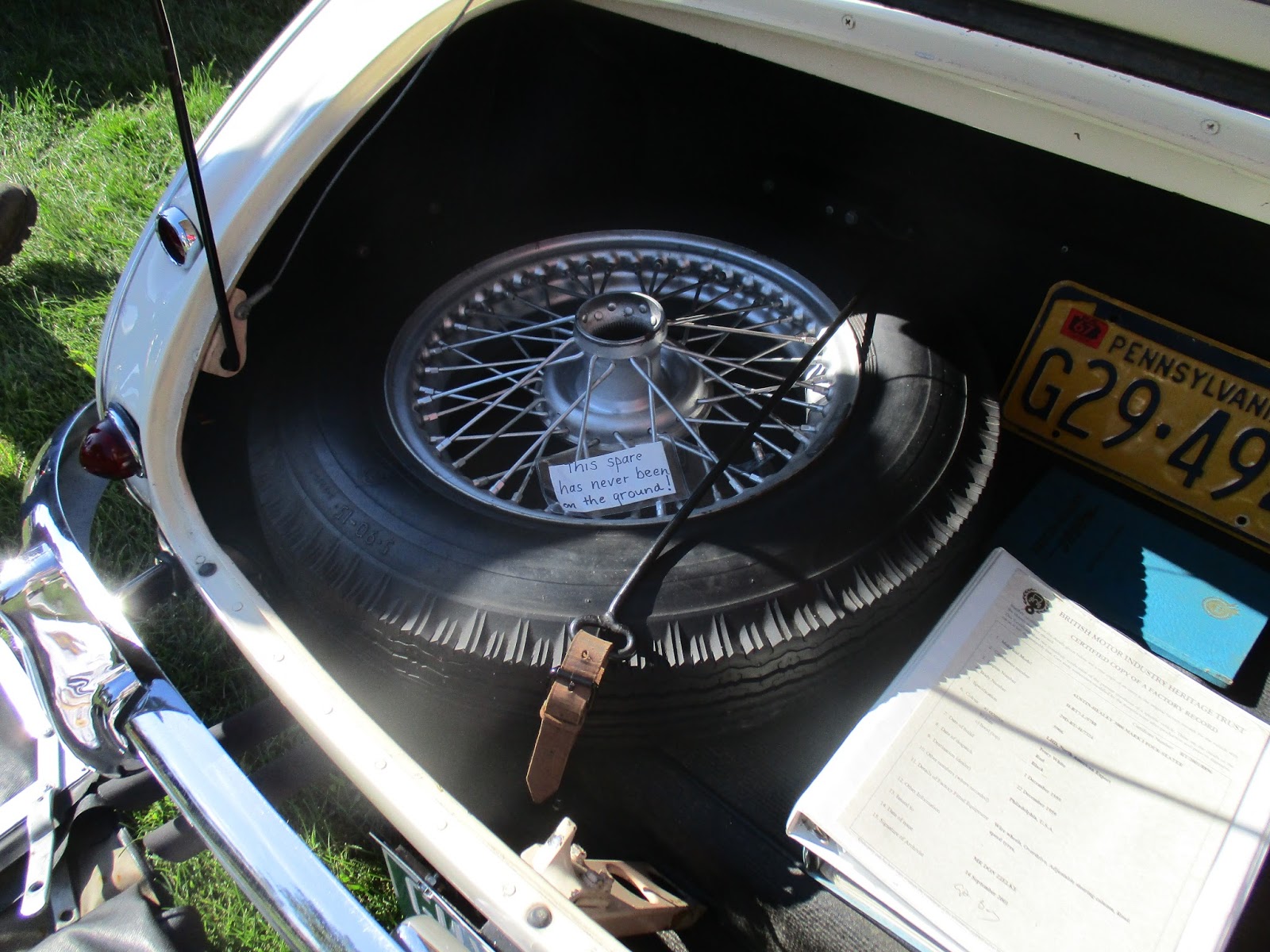 | The boot, with spare, of the above car. Can you read the tag on the spare tire? |