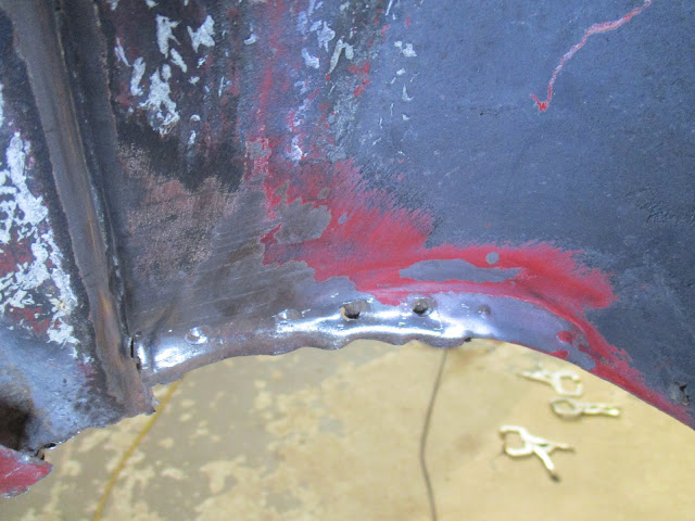 This was my day. Measure and over-cut a patch out of the black car, then trim and grind and fit it to Dorothy.