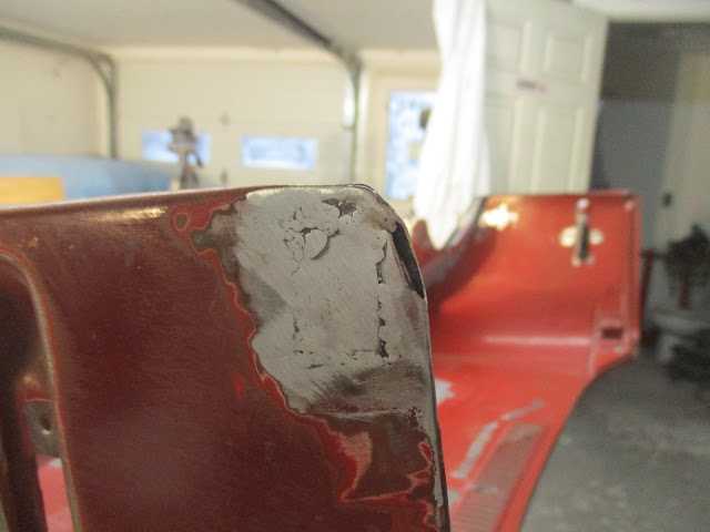 Like I mentioned, it's a much more challenging time with the larger panel. Looks like I fixed by cratering problem this time and I got the epoxy where it needed to go, but there was some spots of dry spray (probably why I didn't have any cratering). Since I'll be putting at least one more full round of epoxy on it I'm not too worried, but we'll see. Unlike the doors and other stuff so far, I only intend to shoot the areas that really need the epoxy following metal work instead of the entire thing. It'll save some paint, time and just a wasted effort on something that doesn't really need it, I think.